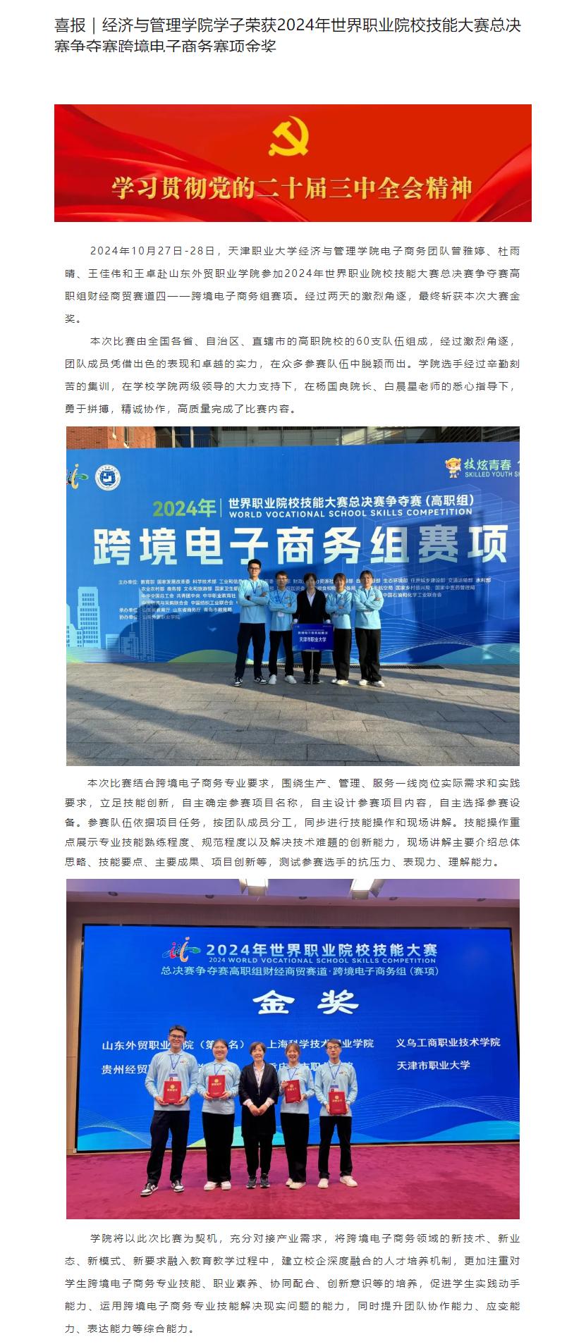 经济与管理学院学子荣获2024年世界职业院校技能大赛总决赛争夺赛跨境电子商务赛项金奖