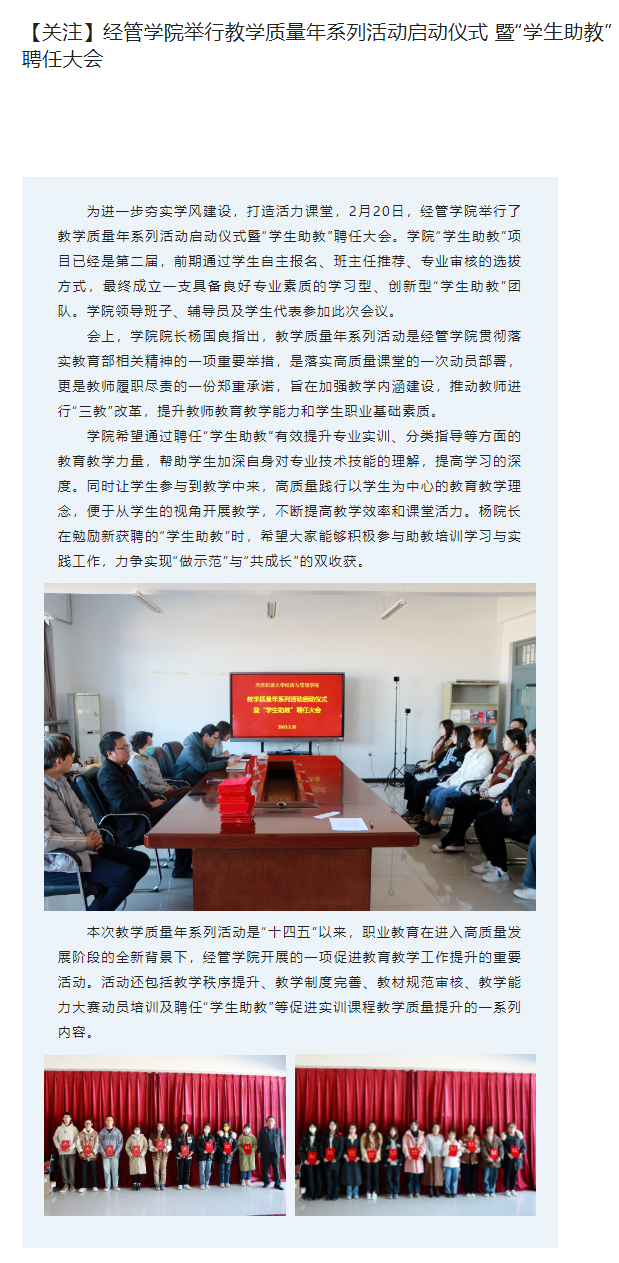 经管学院举行教学质量年系列活动启动仪式 暨“学生助教”聘任大会