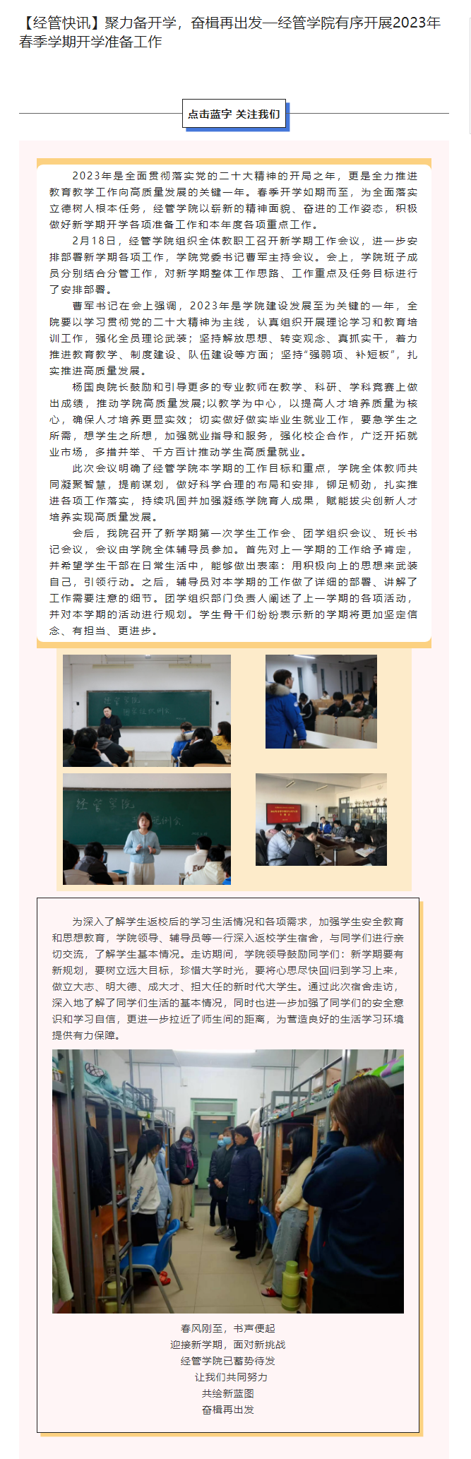 【经管快讯】聚力备开学,奋楫再出发—经管学院有序开展2023年春季学期开学准备工作