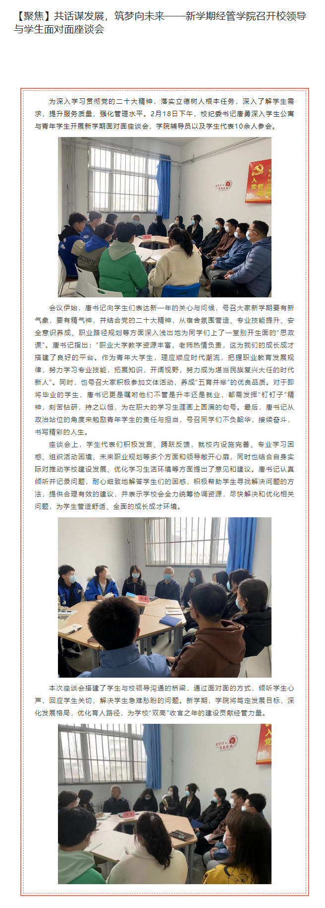 【聚焦】共话谋发展,筑梦向未来——新学期经管学院召开校领导与学生面对面座谈会