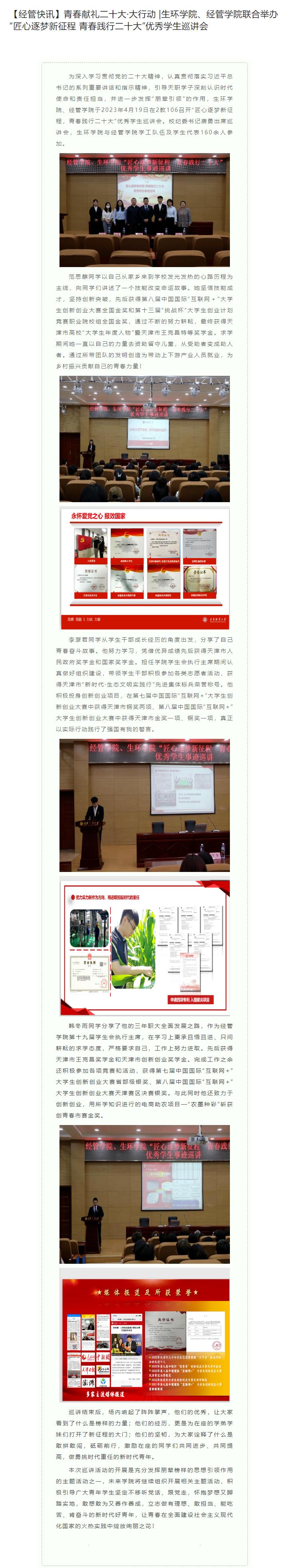 【经管快讯】青春献礼二十大·大行动 _生环学院、经管学院联合举办“匠心逐梦新征程 青春践行二十大”优秀学生巡讲会