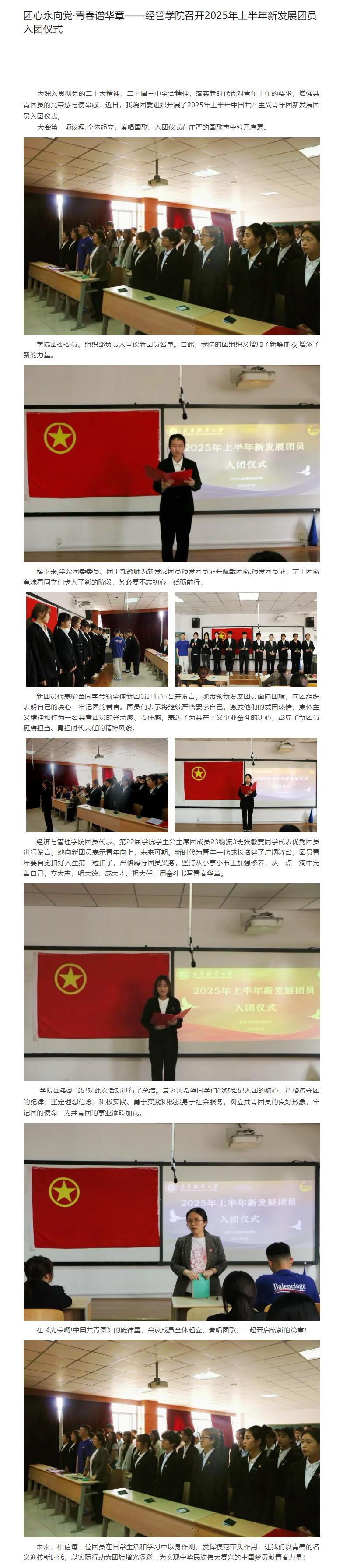 团心永向党·青春谱华章——经管学院召开2025年上半年新发展团员入团仪式