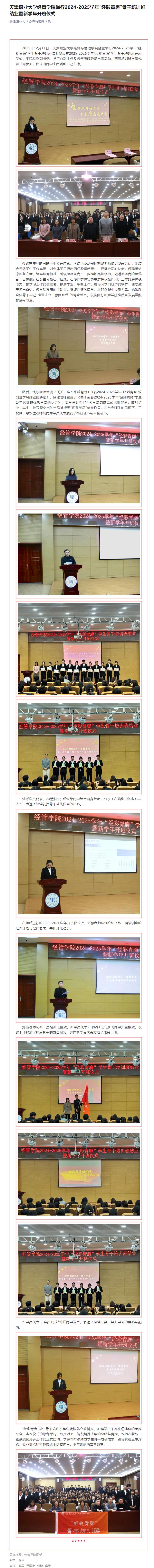 天津职业大学经管学院举行2024-2025学年“经彩青膺”骨干培训班结业暨新学年开班仪式