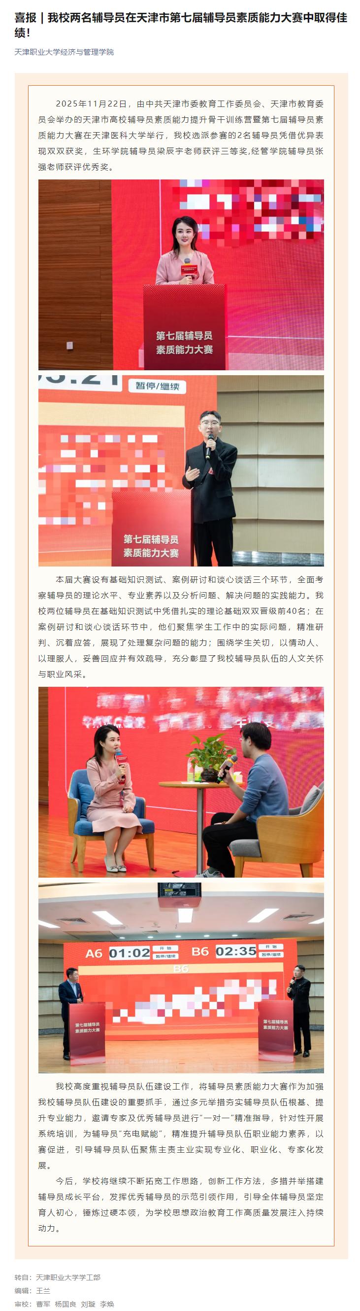喜报 我校两名辅导员在天津市第七届辅导员素质能力大赛中取得佳绩!